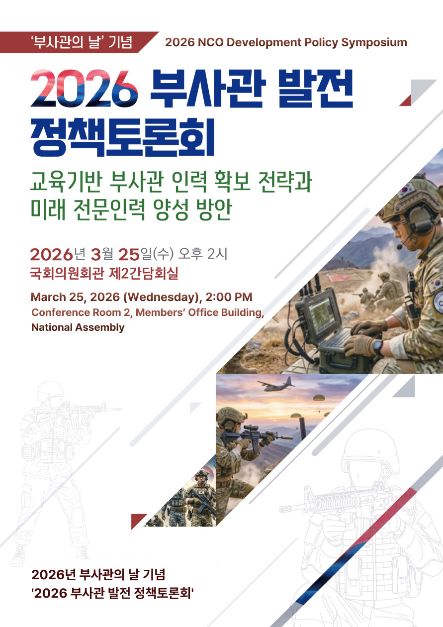 HOME알림마당 공지사항[공지] 2026년 부사관의 날 기념 '2026 부사관 발전 정책토론회' 안내